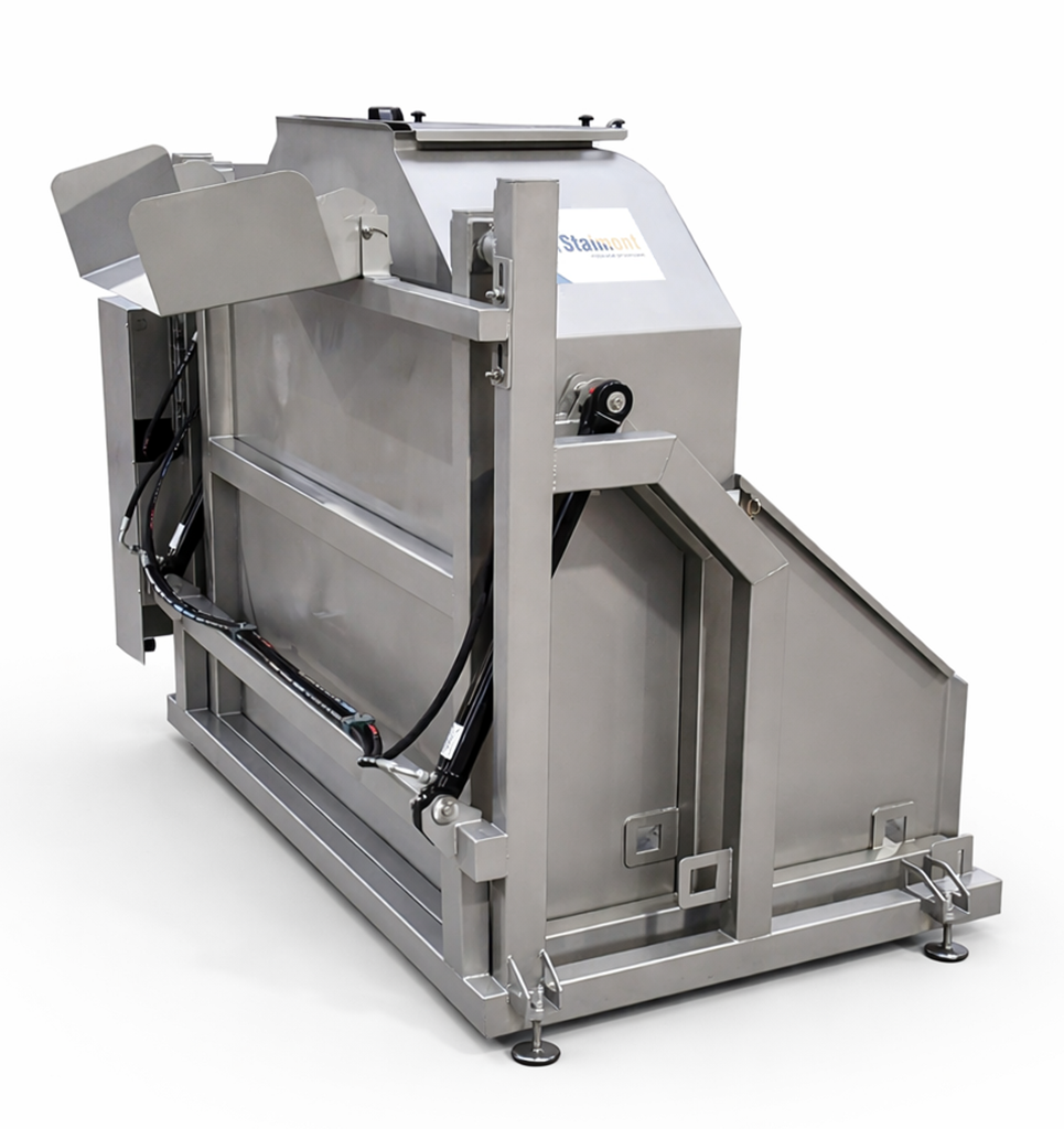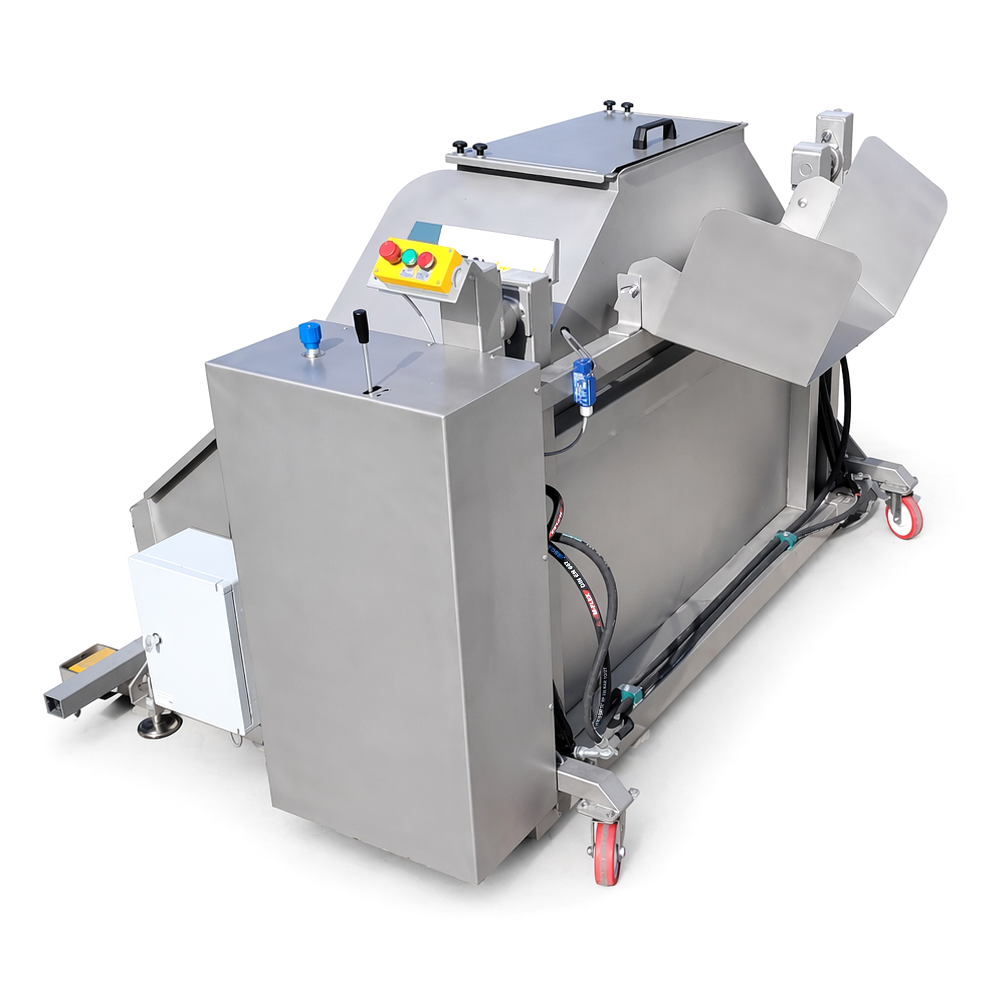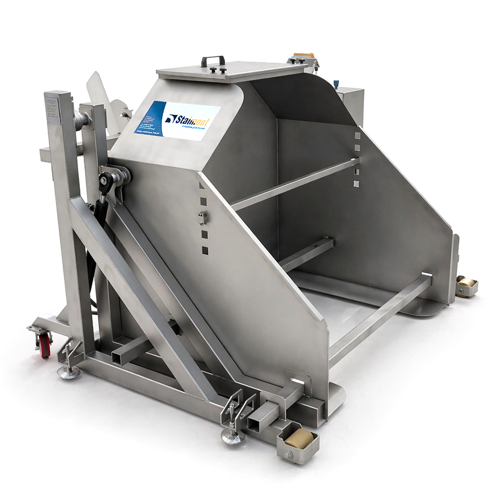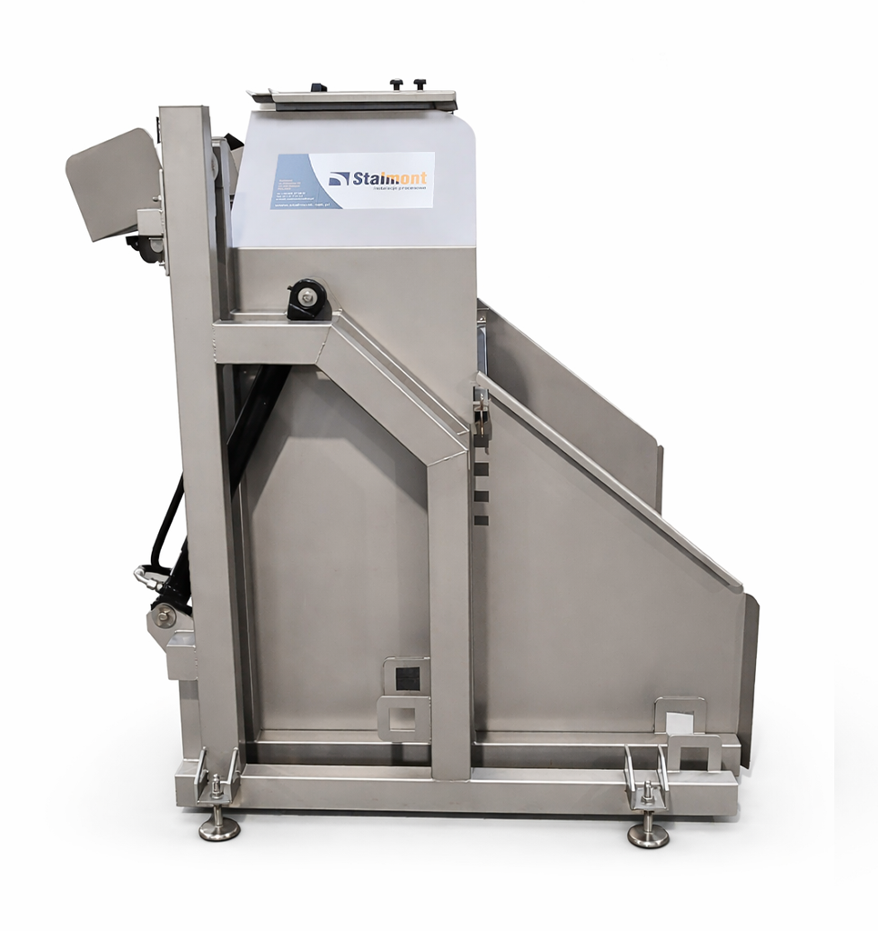 De nombreuses lignes utilisent des conteneurs de transport standardisés. Le basculeur de caisses est conçu pour manipuler différents types de conteneurs en toute sécurité, fonctionnant comme une benne basculante universelle pour l’industrie agroalimentaire.